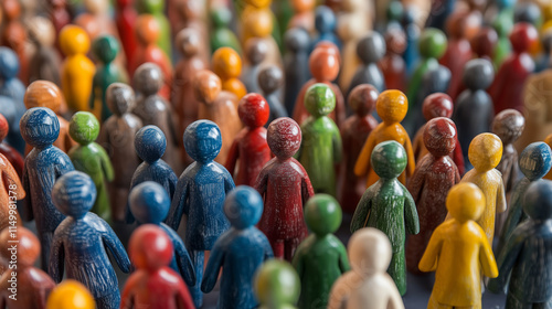 Colourful wooden figures, visualizing diversity of all people, created with generative AI technology