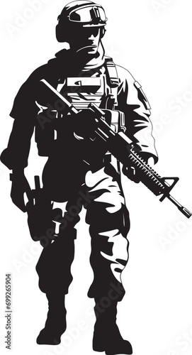 Combat Ready Guardian Armed Soldier Emblem in Black Tactical Defender Armyman Vector Logo Icon Design