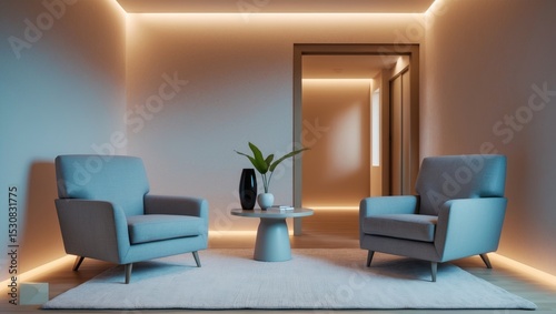 Comfortable clinic interior waiting room layout