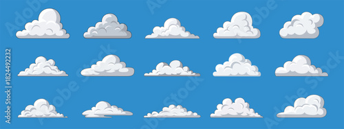 cloud, cloud, cartoon, comic, vector, illustration, graphic, design, set, collection, shaded, outline, shadow, white, grey, blue, sky, weather, fluffy, volume, dramatic, game, asset, app, interface, element, drawing, retro, vintage, icon, symbol, shape, isolated, cumulus, book