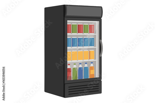 drink, refrigerator, beverage, cooler, refrigerator, glass door, bottled, canned, display, showcase, supermarket, store, coffee, equipment, half face, front view, retail, refreshment, cold, chilled, vending, market, modern, commercial, vector, isolated, black, convenience, juice, water, soda, illustration, interior, shelf, bottle, can, merchandising, appliance, shop, kitchen, grocery, storage, object