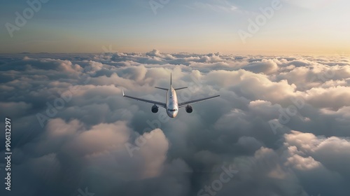 Commercial plane flying above of clouds,Travel and transport concept background,generative ai