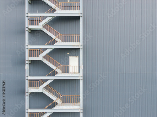 Commercial Warehouse Exterior with Fire Escape Stairs