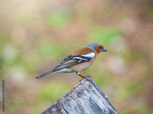 Common chaffinch, Fringilla coelebs, sits on a tree. Common chaffinch in wildlife.