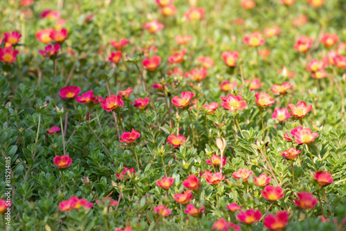 Common Purslane or Verdolaga or Pigweed or Little Hogweed or Pusley flower in the garden