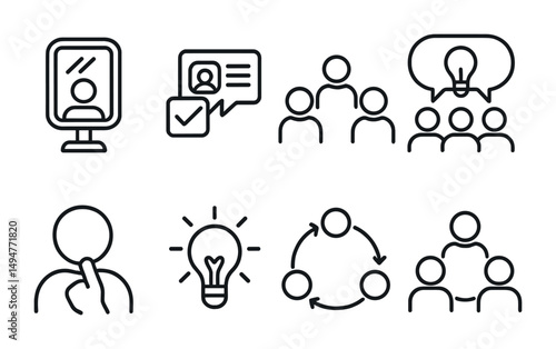 communication, collaboration, icon, design element, flat, outline, vector, icon, set, linear, conversation, idea, meeting, project, brainstorm, connection, networking, dialogue, interaction, exchange, social, professional, business, creative, strategy, productivity
