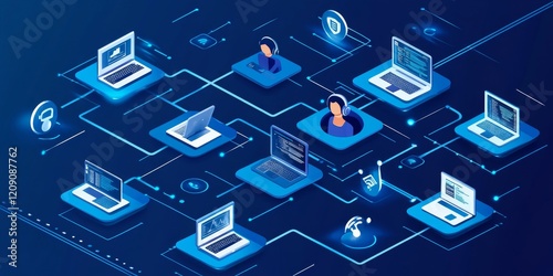 Communication support, call center and customer service help desk. VOIP headset for customer service support (call center) concept, Generative AI
