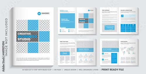 Company profile brochure template layout design, Minimalist Multi-pages corporate brochure design template, 8 Pages Minimal business brochure template with simple style and modern layout