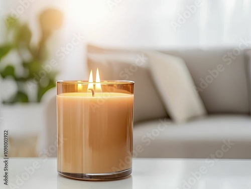 Compassionate candles, rustic elegance, warm earth tones, front view focus, enhanced by inviting living room ambiance.