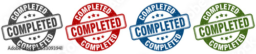 completed stamp. completed round stamp set isolated on white background
