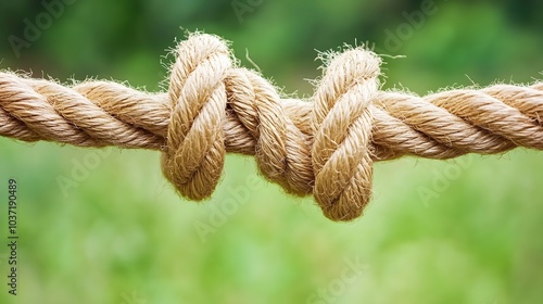 Complex web of interconnected ropes symbolizing intricate business relationships and antitrust challenges, with a focused foreground rope representing the effort to break monopolies.