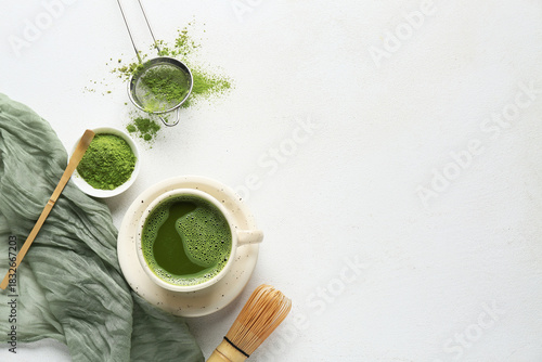 bowl, composition, matcha, napkin, powder, tea, white, asia, asian, background, beverage, care, ceremony, chinese, colours, copy, culture, cup, drink, dry, flat, green, healthy, herbal, ingredient, japan, japanese, lay, lifestyle, liquid, natural, nobody, object, organic, oriental, powdered, relax, sieve, space, tasty, text, top, traditional, view, zen