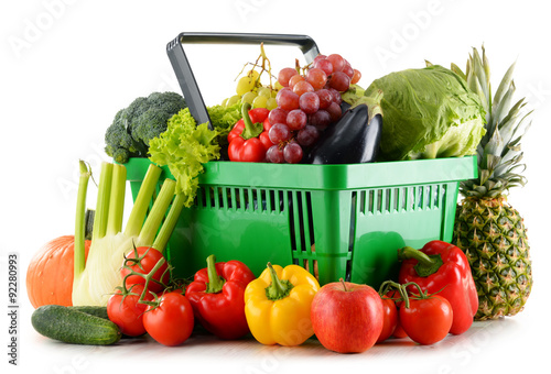 grocery, fruit, vegetable, food, assorted, variety, raw, fresh, organic, diet, balanced, shopping, grape, health, detox, basket, white, isolated, vegetarian, vegan, plastic, apple, pineapple, lettuce, orange, broccoli, tomatoes, pepper
