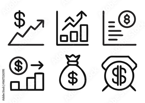 economy, financial, business, icon, set, symbol, growth, money, investment, commerce, trade, finance, market, banking, currency, profit, loss, analysis, strategy, digital, graphic, design, illustration, concept, presentation