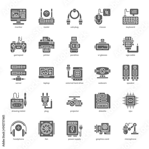 Computer Hardware icon pack for your website design, logo, app, and user interface. Computer Hardware icon glyph design. Vector graphics illustration and editable stroke.