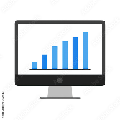 computer, monitor, display, screen, chart, graph, bar, datum, statistic, growth, increase, progress, success, business, finance, technology, digital, information, report, presentation, concept, icon, vector, isolated, transparent, background, upward, trend, performance