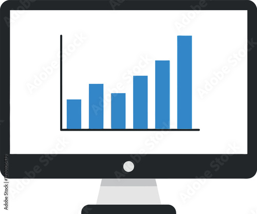 computer, monitor, graph, bar, increase, blue, flat, design, digital, art, vector, illustration, datum, analysis, business, growth, technology, statistic, trend, performance, information, screen, display, software, tool, visualisation, creative, simple, clean, shape, colours, modern, graphic, element, layout, concept, visual, communication, style, professional, productivity, report, chart, image
