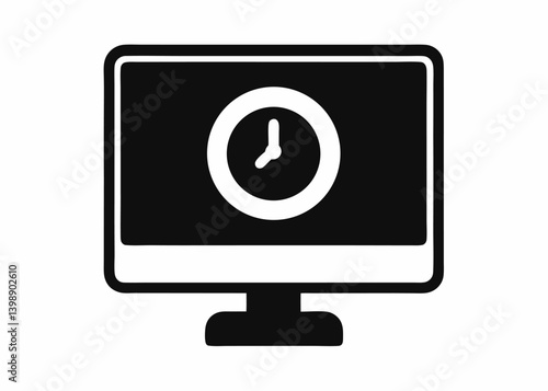 computer, monitor, icon, clock, display, minimalist, design, screen, time, watch, timer, schedule, deadline, appointment, desktop, technology, digital, device, office, work, business, modern, simple, clean, flat, vector, graphic, symbol, signs, interface, element, datum