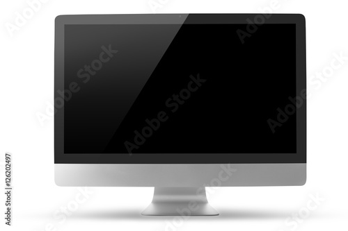computer, isolated, display, monitor, screen, technology, modern, white, blank, business, clipping, path, cyberspace, black, background, desktop, equipment, object, flat, frame, lcd, design, communication, silver, network