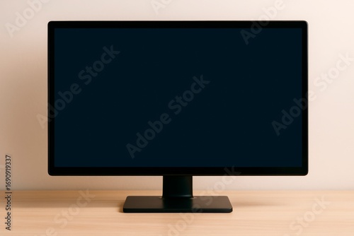 monitor, screen, computer, transport, background, design, empty, blank, display, clean, space, mock, up, copy space, branding, presentation, light, layout, creative, view, closeup, template, desk, minimal, modern, technology, office, digital, black, wood, front, device, perspective, electronic, interior, object, workspace, equipment, style, contemporary, desktop, business, isolated, wall, ai, generative, illustration