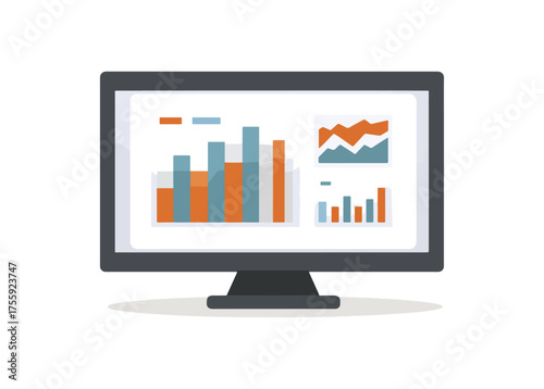 monitor, computer, screen, display, datum, chart, graph, business, analysis, statistic, report, information, visualisation, diagram, performance, growth, trend, digital, technology, interface, software, application, workspace, modern, flat, illustration, vector, graphic, design, icon, presentation, marketing, web, isolated, template, copy space, background, financial, economy, strategy, management, communication, office, productivity
