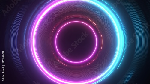 Concentric Neon Rings Glowing in Cyan and Magenta on Dark Background