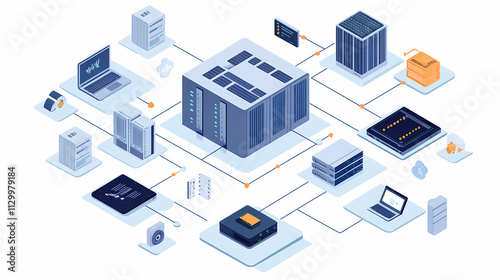 concept, datum, center, connectivity, different, enterprise, system, connecting, datacenter, accessing, service, mobile, application, illustration