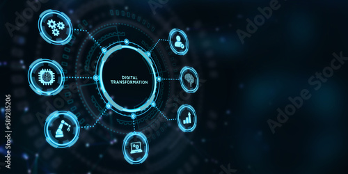 Concept of digitization of business processes and modern technology. Digital transformation. 3d illustration