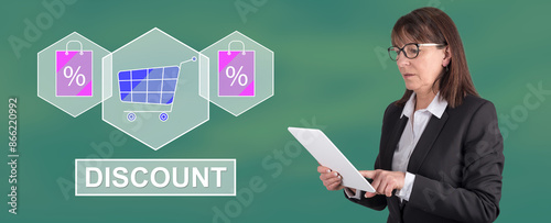 discount, special, offer, cart, shopping, tablet, concept, sale, symbol, commercial, sale, percentage, business, percent, digital, illustration, price, application, woman, purchase, bag, streetcar, app, promotion, market, retail, marketing, commerce, buy