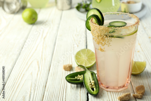 Concept of drink with Jalapeno cocktail, space for text
