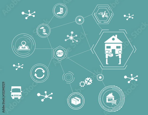 delivery, home, concept, parcel, transportation, network, house, connection, icon, food, online, box, courier, shipping, business, scooter, express, sale, shopping, order, fast, service, transport, package