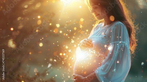 concept of miracle of birth with woman's glowing pregnant belly, embracing the happiness and anticipation of welcoming a newborn