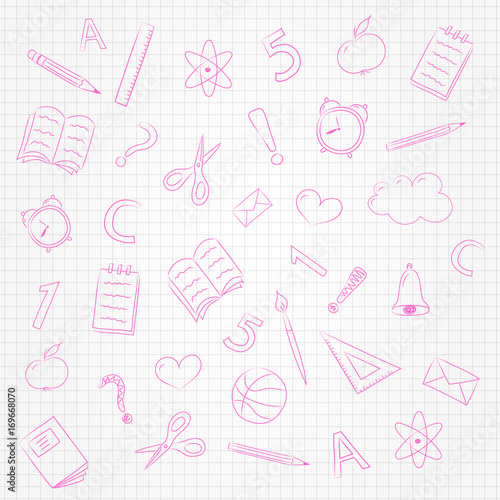 school, background, texture, copy space, vector, hand, drawn, white, paper, checked, doodle, funny, back, supply, vignetting, equipment, clock, september, scissors, notebook, pen, crayons, graphic, illustration, tool, stationery, class, accessory, wax crayons, children, education, poster, flier, banner, design, concept, study, creative, season, scrapbook, element, student, classroom, empty, copy, space, mathematic, alarm, pink