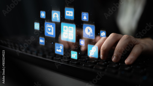 Concept of social media revolutionizes digital communication. This platform enables global connectivity, enhancing social media strategies for effective marketing and engagement. Entice