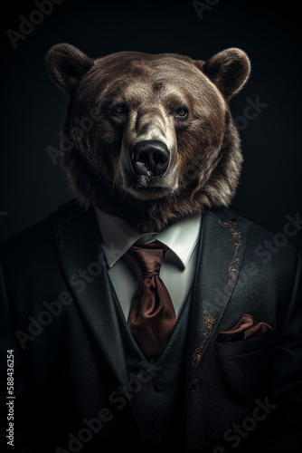 abstract, ai, animal, awful, bear, beast, beautiful, black, brown, business, businessman, ceo, cinematic, close, concept, conceptual, costume, design, dramatic, ear, economy, eye, face, fearful, fur, generative, graphic, illustration, king, layout, light, lighting, majestic, market, metaphor, portrait, powerful, recession, scarey, shadow, shrinking, strong, suit, teddy, template, attaching, wild