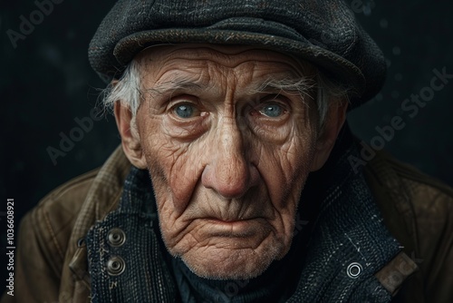 elderly, man, portrait, expression, weathered, skin, rustic, clothing, cap, dark, background, closeup, eye, wrinkle, mature, face, texture, vintage, character, depth, emotion, wisdom, age, life events, life, history, storytelling, contemplative, thoughtful, introspective, timeless, classic, photo, art, human, male, senior, person, individuality, solitude, dignity, resilience, strength, heritage, culture, identity, narrative