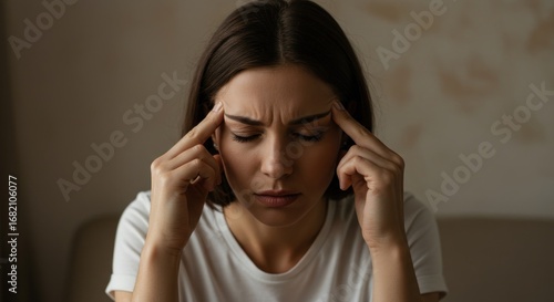 pain, agony, suffering, distress, stress, worry, fear, anxiety, cephalalgia, migraine, mental, emotional, unwell, ill, discomfort, tension, pressure, brow, furrowed, eye, closed, finger, touching, temple, forehead, concern