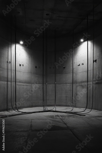 wire, electric, lamp, floor, rough, texture, cement, ceiling, urban, wall, interior, concrete, space, light, architecture, room, empty, huge, cold, grey, building, construction, structure, design, old