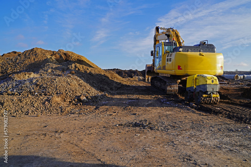 construction, architecture, construction site, concrete, german, manufacture, infrastructure, road construction, men at work, production, roadway, formwork, machinery, equipment, industry, yellow, work, vehicle