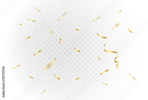 Confetti explosion on a transparent background. Shiny shiny golden paper pieces fly and spread around. Zoom effect style. Vector eps 10