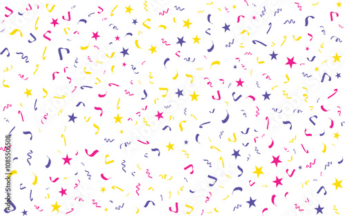 Confetti falling background. Birthday, weeding anniversary, Party, event, festive firework. Multicolored Carnival confetti on white background.
