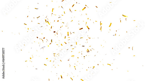 Confetti partical isolated background. 3d Rendering Transparent Confetti. 3d render of Spiral Gold confetti flying. Golden Confetti Transparent Background. Gold Confeti Failling White Background