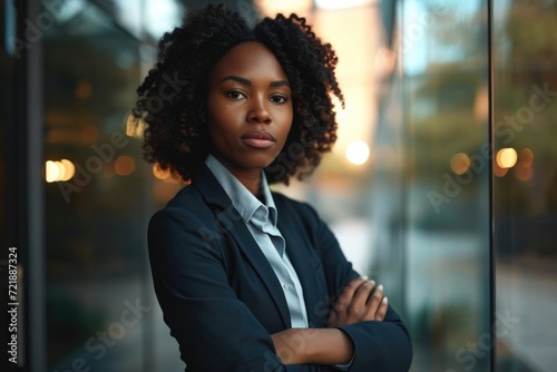 Confident African American female CEO in office portrait.