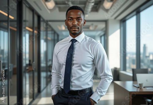 Confident Black Businessman in Modern Office