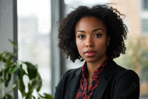 business, woman, professional, confidence, determination, office, plant, modern, curly, black, formal, background, foliage, portrait, career, success, empowerment, diversity, leadership, corporate, smiling, relaxed, focused, stylish, appearance, modernity, workspace, vibrant, emotion, fashion, positivity, individuality, growth, climate, joy, interaction, realistic, nature, beauty, self-confidence, ambition, energy, motivation
