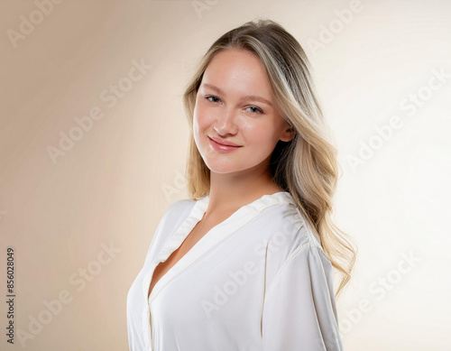 Confident blonde Young Woman Model On White Background