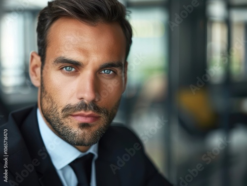 Confident businessman with arms crossed, close-up shot highlighting his leadership qualities