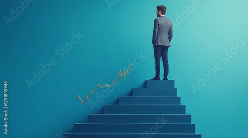Confident Businessperson Standing at the Top of a Staircase
