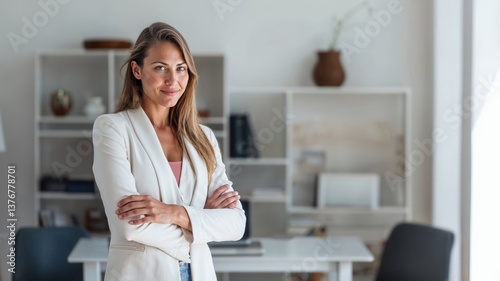 Confident Businesswoman Standing in a Modern Professional Office Environment