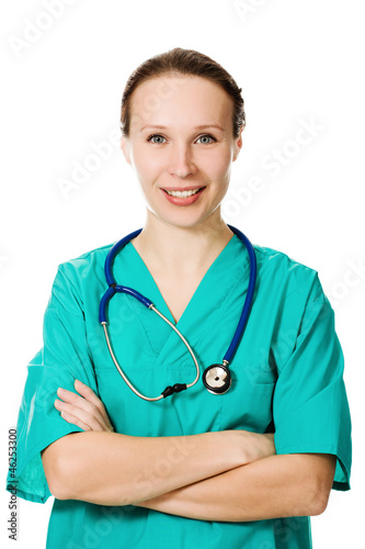 green, adult, arm, attractive, background, beautiful, beauty, care, clinic, confident, crossed, doctor, female, folded, friendly, girl, hand, hand, happiness, happy, health, health care, hospital, isolated, look, medicals, medicine, mid, nurse, 1, people, person, physician, portrait, profession, professional, shot, smile, specialist, stethoscope, studio, surgeon, surgery, uniform, white, woman, woman, work, young